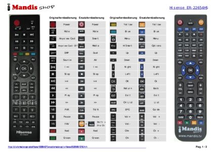 Ein Dokument ist enthalten, um die Verwendung der neuen Fernbedienung zu erleichtern, indem es die Tastenbelegung zeigt.