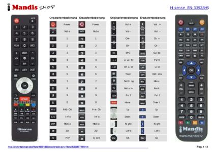 Ein Dokument ist enthalten, um die Verwendung der neuen Fernbedienung zu erleichtern, indem es die Tastenbelegung zeigt.