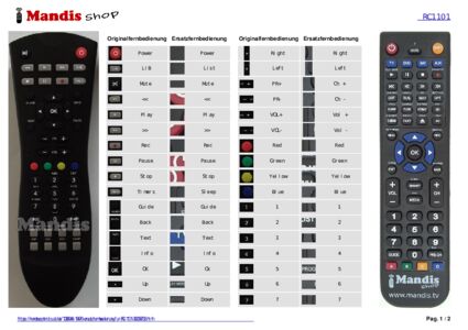 Ein Dokument ist enthalten, um die Verwendung der neuen Fernbedienung zu erleichtern, indem es die Tastenbelegung zeigt.