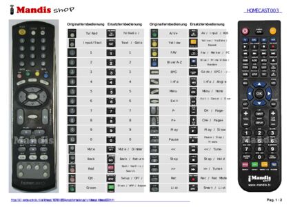 Diese Fernbedienung ersetzt Ihre Homecast003 in vollem Umfang und bietet alle Funktionen des Originals.