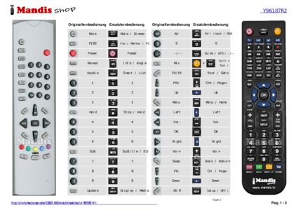 Ein Dokument ist enthalten, um die Verwendung der neuen Fernbedienung zu erleichtern, indem es die Tastenbelegung zeigt.