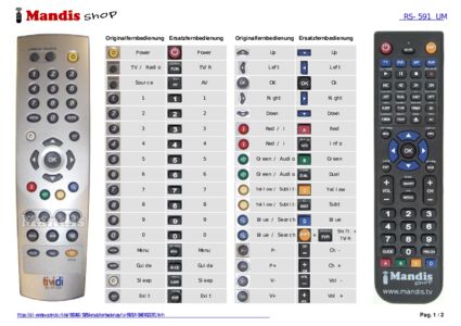 Diese Fernbedienung ersetzt die meisten Funktionen Ihres RS-591 UM. Es ist keine Universalfernbedienung, sondern eine Kopie mit den meisten Tasten und Funktionen Ihres Originals.