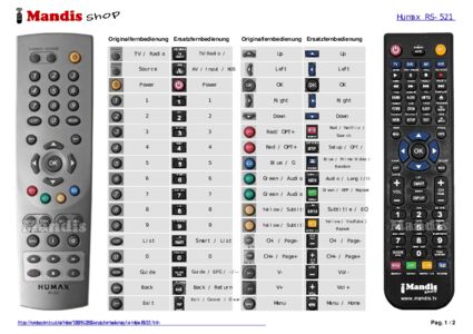 Ein Dokument ist enthalten, um die Verwendung der neuen Fernbedienung zu erleichtern, indem es die Tastenbelegung zeigt.