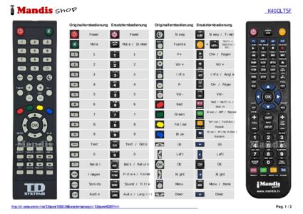 Ein Dokument ist enthalten, um die Verwendung der neuen Fernbedienung zu erleichtern, indem es die Tastenbelegung zeigt.