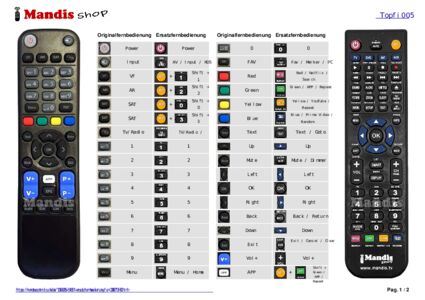 Ein Dokument ist enthalten, um die Verwendung der neuen Fernbedienung zu erleichtern, indem es die Tastenbelegung zeigt.