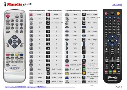 Diese Fernbedienung ersetzt Ihre RC 00041 in vollem Umfang und bietet alle Funktionen des Originals.