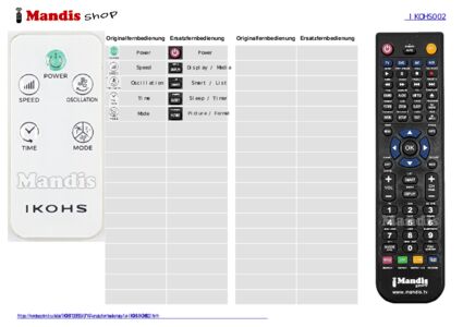 Ein Dokument ist enthalten, um die Verwendung der neuen Fernbedienung zu erleichtern, indem es die Tastenbelegung zeigt.