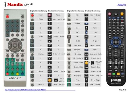 Ein Dokument ist enthalten, um die Verwendung der neuen Fernbedienung zu erleichtern, indem es die Tastenbelegung zeigt.