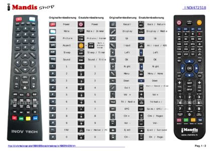 Home > Marken > Fernbedienungen INOV TECH > Fernbedienung für INOV TECH INOV472518 (472518)