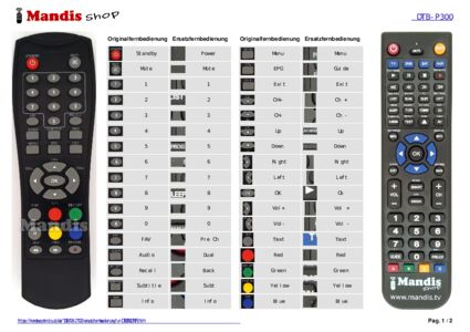 Ein Dokument ist enthalten, um die Verwendung der neuen Fernbedienung zu erleichtern, indem es die Tastenbelegung zeigt.
