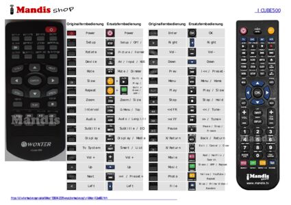 Ein Dokument ist enthalten, um die Verwendung der neuen Fernbedienung zu erleichtern, indem es die Tastenbelegung zeigt.