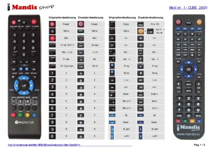 Ein Dokument ist enthalten, um die Verwendung der neuen Fernbedienung zu erleichtern, indem es die Tastenbelegung zeigt.