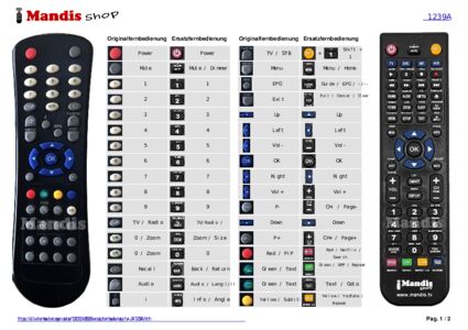 Ein Dokument ist enthalten, um die Verwendung der neuen Fernbedienung zu erleichtern, indem es die Tastenbelegung zeigt.