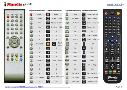 Ein Dokument ist enthalten, um die Verwendung der neuen Fernbedienung zu erleichtern, indem es die Tastenbelegung zeigt.