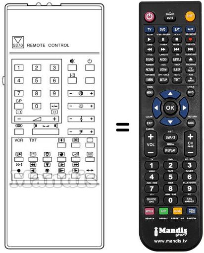 Die Fernbedienung ersetzt das Original RC5370 in der Gesamtheit seiner Funktionen.