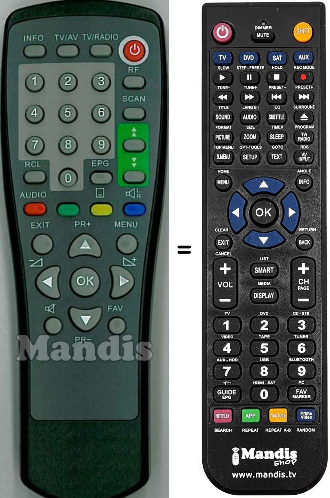 Es handelt sich jedoch nicht um eine Universalfernbedienung sondern um eine Fernbedienung die das Original ersetzt.
