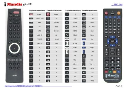 Diese Fernbedienung ersetzt Ihre JAMO001 in vollem Umfang und bietet alle Funktionen des Originals.