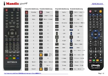 Ein Dokument ist enthalten, um die Verwendung der neuen Fernbedienung zu erleichtern, indem es die Tastenbelegung zeigt.