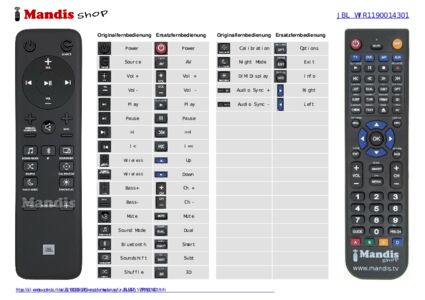 Diese Fernbedienung ersetzt Ihre BAR 5.1 (WIR1190014301) in vollem Umfang und bietet alle Funktionen des Originals.