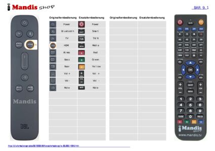 Ein Dokument ist enthalten, um die Verwendung der neuen Fernbedienung zu erleichtern, indem es die Tastenbelegung zeigt.