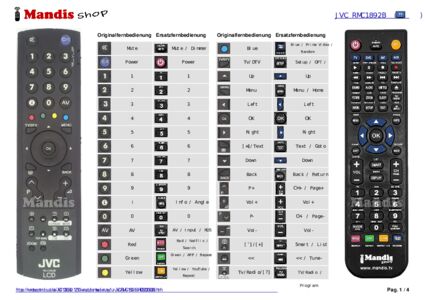 Ein Dokument ist enthalten, um die Verwendung der neuen Fernbedienung zu erleichtern, indem es die Tastenbelegung zeigt.