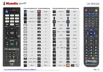 Diese Fernbedienung ersetzt Ihre RM-C1232 in vollem Umfang und bietet alle Funktionen des Originals.