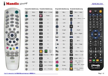Ein Dokument ist enthalten, um die Verwendung der neuen Fernbedienung zu erleichtern, indem es die Tastenbelegung zeigt.