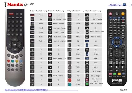 Diese Fernbedienung ersetzt Ihre RCH 8 B 44 (XLX187R-2) in vollem Umfang und bietet alle Funktionen des Originals.