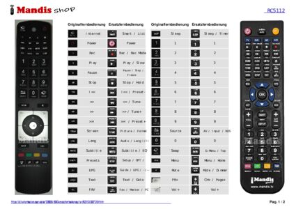 Ein Dokument ist enthalten, um die Verwendung der neuen Fernbedienung zu erleichtern, indem es die Tastenbelegung zeigt.