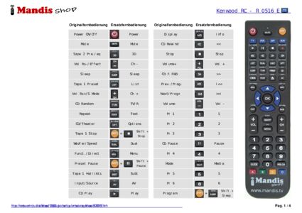 Ein Dokument ist enthalten, um die Verwendung der neuen Fernbedienung zu erleichtern, indem es die Tastenbelegung zeigt.
