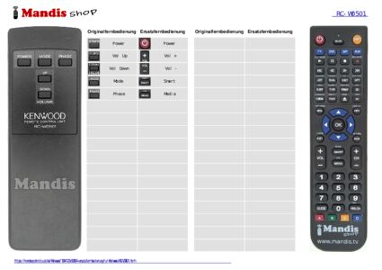 Diese Fernbedienung ersetzt Ihre RC-W0501 in vollem Umfang und bietet alle Funktionen des Originals.