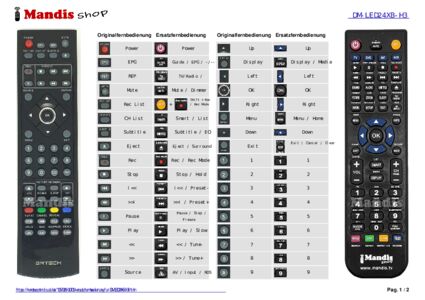 Ein Dokument ist enthalten, um die Verwendung der neuen Fernbedienung zu erleichtern, indem es die Tastenbelegung zeigt.