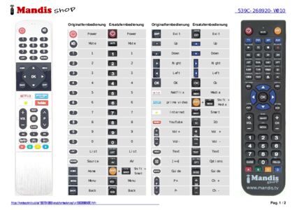 Ein Dokument ist enthalten, um die Verwendung der neuen Fernbedienung zu erleichtern, indem es die Tastenbelegung zeigt.