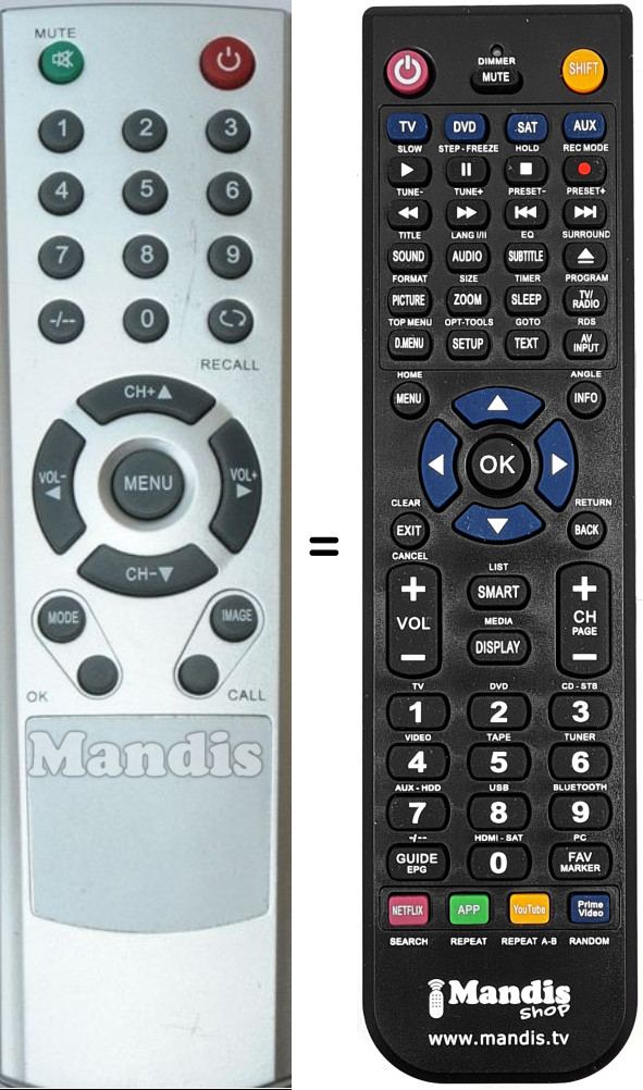 Es handelt sich jedoch nicht um eine Universalfernbedienung sondern um eine Fernbedienung die das Original ersetzt.