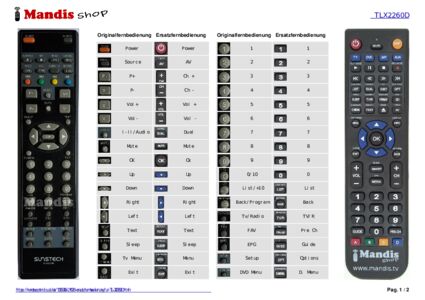 Ein Dokument ist enthalten, um die Verwendung der neuen Fernbedienung zu erleichtern, indem es die Tastenbelegung zeigt.