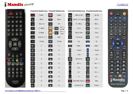Ein Dokument ist enthalten, um die Verwendung der neuen Fernbedienung zu erleichtern, indem es die Tastenbelegung zeigt.