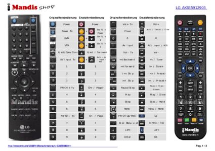 Ein Dokument ist enthalten, um die Verwendung der neuen Fernbedienung zu erleichtern, indem es die Tastenbelegung zeigt.