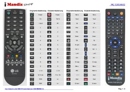 Diese Fernbedienung ersetzt Ihre CL8120 (MKJ32816602) in vollem Umfang und bietet alle Funktionen des Originals.