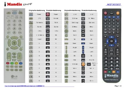 Diese Fernbedienung ersetzt Ihre AKB 73655837 in vollem Umfang und bietet alle Funktionen des Originals.