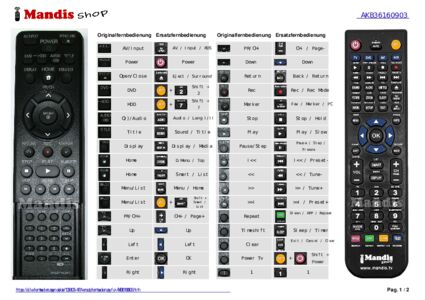 Ein Dokument ist enthalten, um die Verwendung der neuen Fernbedienung zu erleichtern, indem es die Tastenbelegung zeigt.