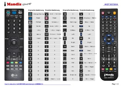 Ein Dokument ist enthalten, um die Verwendung der neuen Fernbedienung zu erleichtern, indem es die Tastenbelegung zeigt.
