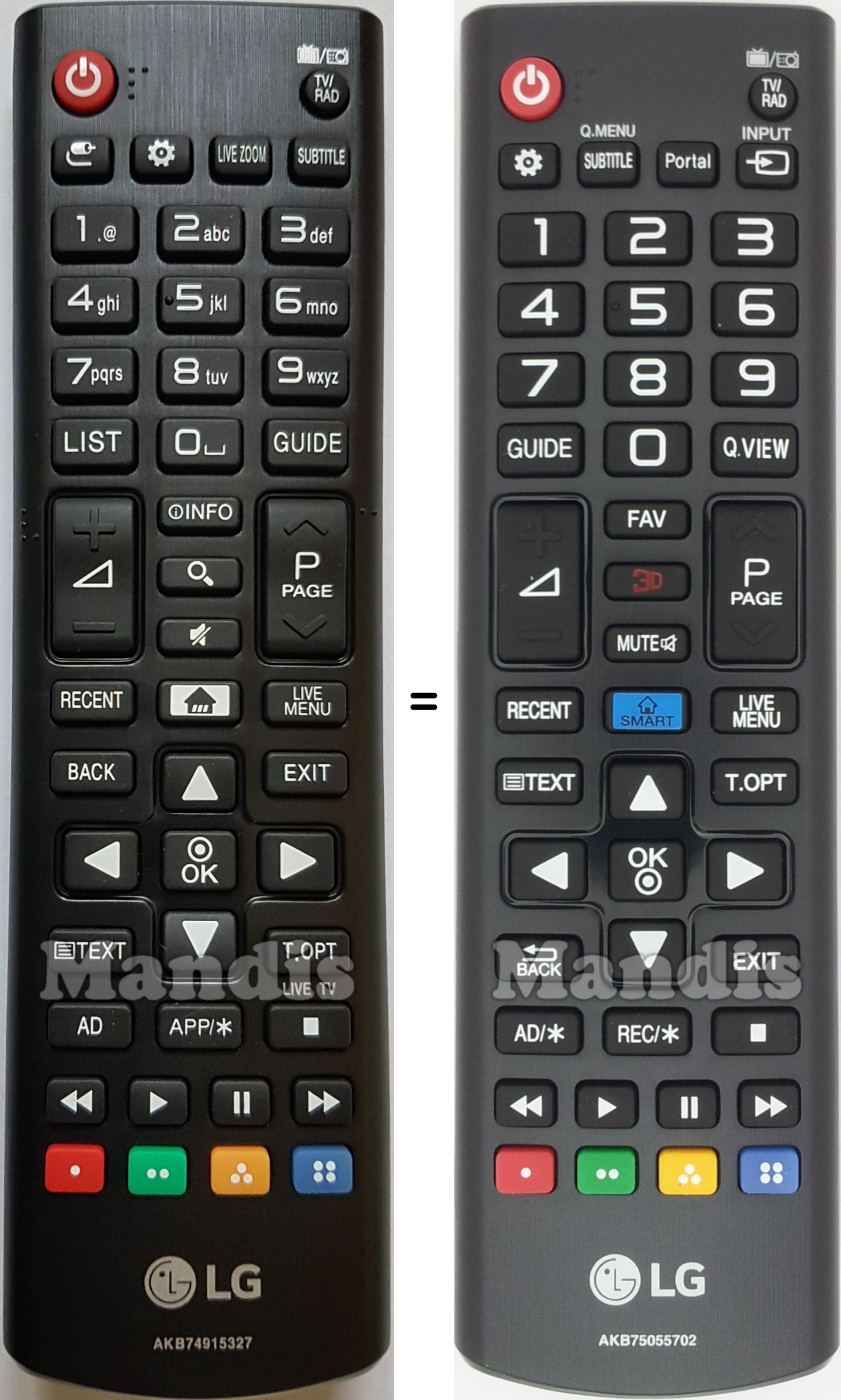 Gleichwertige Fernbedienungen, die über alle Funktionen der Fernbedienung LG AKB75055702 verfügen: