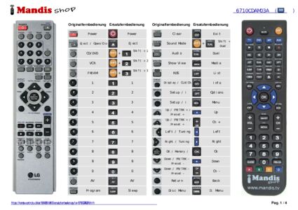 Ein Dokument ist enthalten, um die Verwendung der neuen Fernbedienung zu erleichtern, indem es die Tastenbelegung zeigt.
