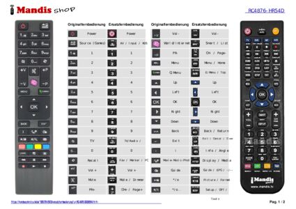 Ein Dokument ist enthalten, um die Verwendung der neuen Fernbedienung zu erleichtern, indem es die Tastenbelegung zeigt.