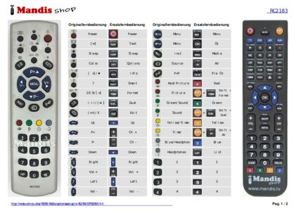 Ein Dokument ist enthalten, um die Verwendung der neuen Fernbedienung zu erleichtern, indem es die Tastenbelegung zeigt.