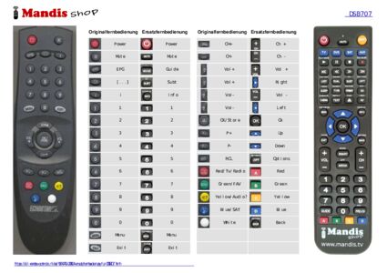 Ein Dokument ist enthalten, um die Verwendung der neuen Fernbedienung zu erleichtern, indem es die Tastenbelegung zeigt.