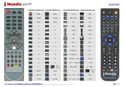 Ein Dokument ist enthalten, um die Verwendung der neuen Fernbedienung zu erleichtern, indem es die Tastenbelegung zeigt.