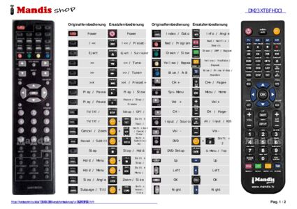 Ein Dokument ist enthalten, um die Verwendung der neuen Fernbedienung zu erleichtern, indem es die Tastenbelegung zeigt.