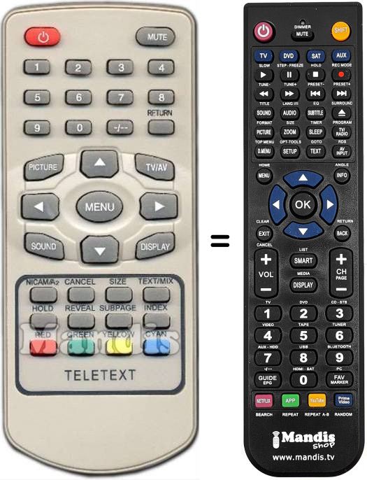 Es handelt sich jedoch nicht um eine Universalfernbedienung sondern um eine Fernbedienung die das Original ersetzt.