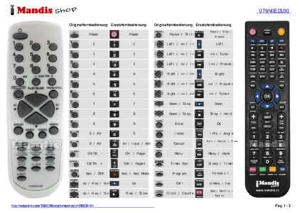 Diese Fernbedienung ersetzt Ihre 076NOED040 in vollem Umfang und bietet alle Funktionen des Originals.